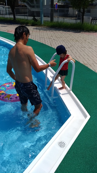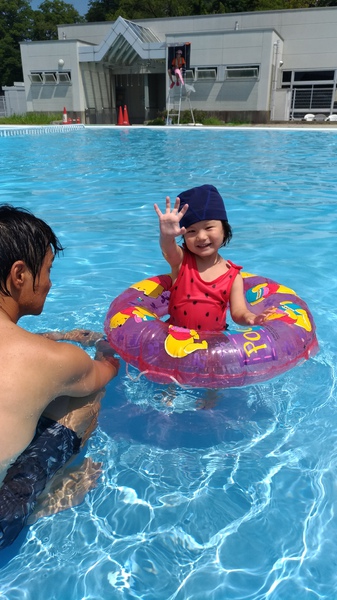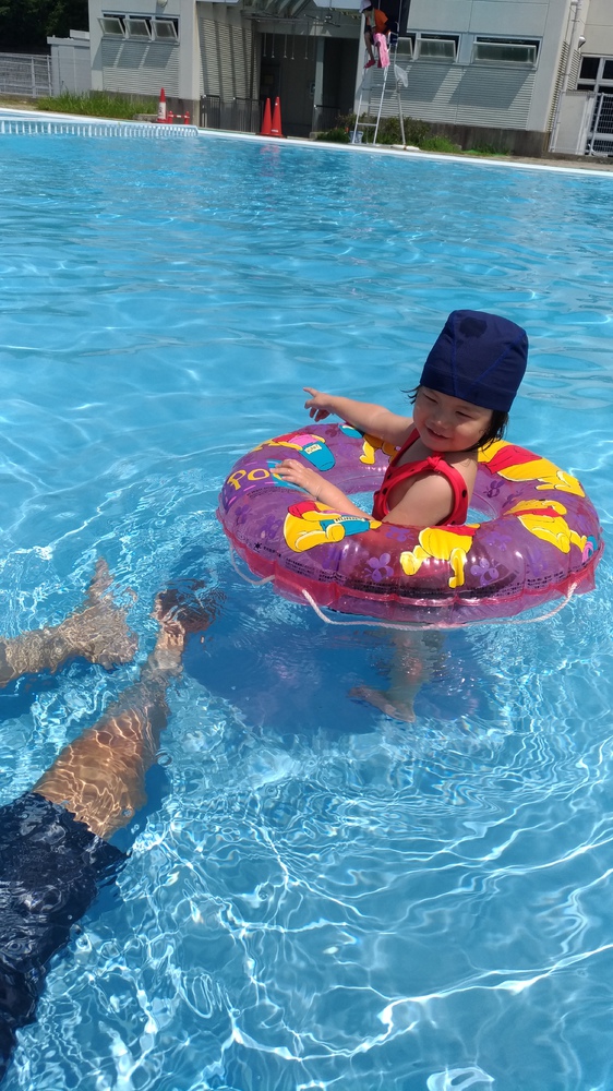 昨年は大きなプール怖がって入れなかったのに、泣かずに楽しんでた。