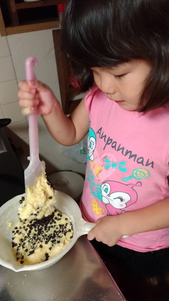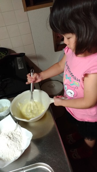 知人にクッキーを作ってあげようと私が準備しだしたら、なっちゃんも!と。