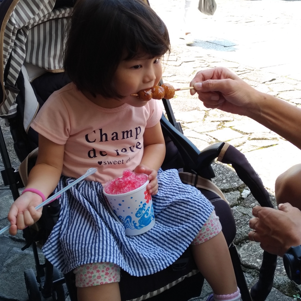 私は五平餅食べたくて買ったらそれも食べたい!と両方食べ出すなっちゃん。