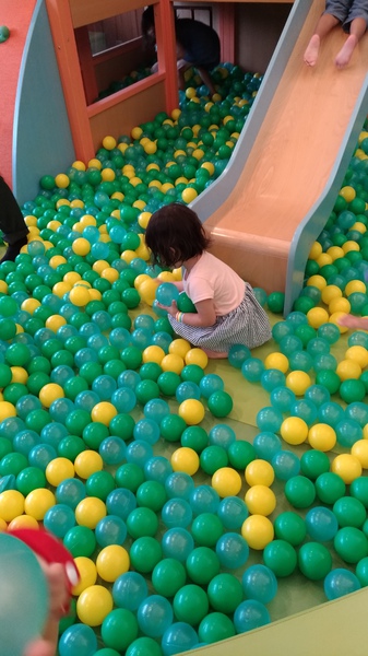 ここは温水プールの他にも中に遊ぶ所があり大はしゃぎ。