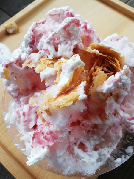 中にはパイ生地が入ってて、ふわふわで今まで食べたかき氷で1番美味しい(*^^*)