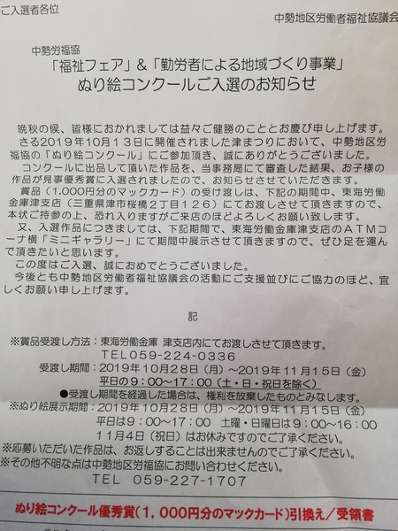 けっこう上手にできたなぁ、でも入賞なんてしないだろうと思っていた。