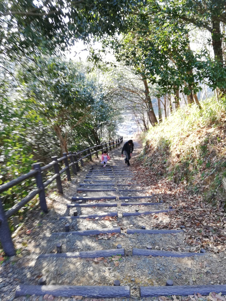頂上の景色が良さそうな城跡の階段をひたすら登る。