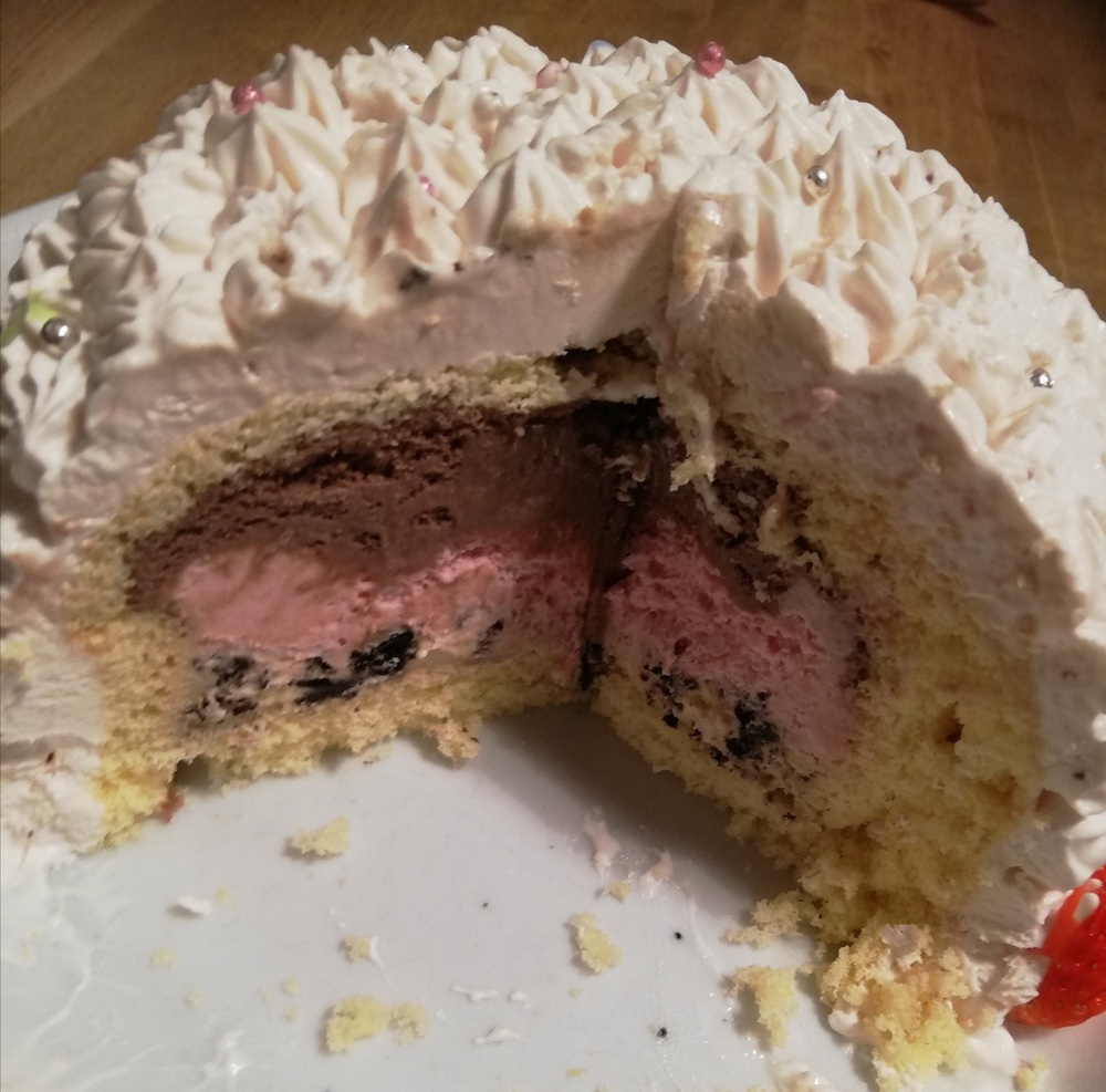 今年のケーキはアイスケーキでドールケーキっぽく作ってみました。