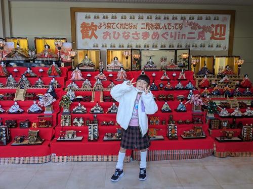 おひなさまめぐり 寒い中、二見のおひなさまめぐりにお出かけ めちゃくちゃ沢山のおひなさま 寒いーーー夫婦岩 スタンプラリーしながら歩いて貰った景品 夜はちらし寿司とクレープおひなさま(笑) 誰ですか?これ(笑) 2024.03.03