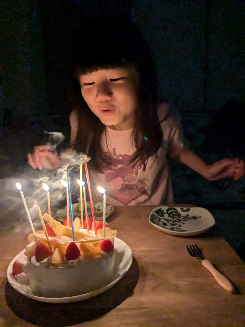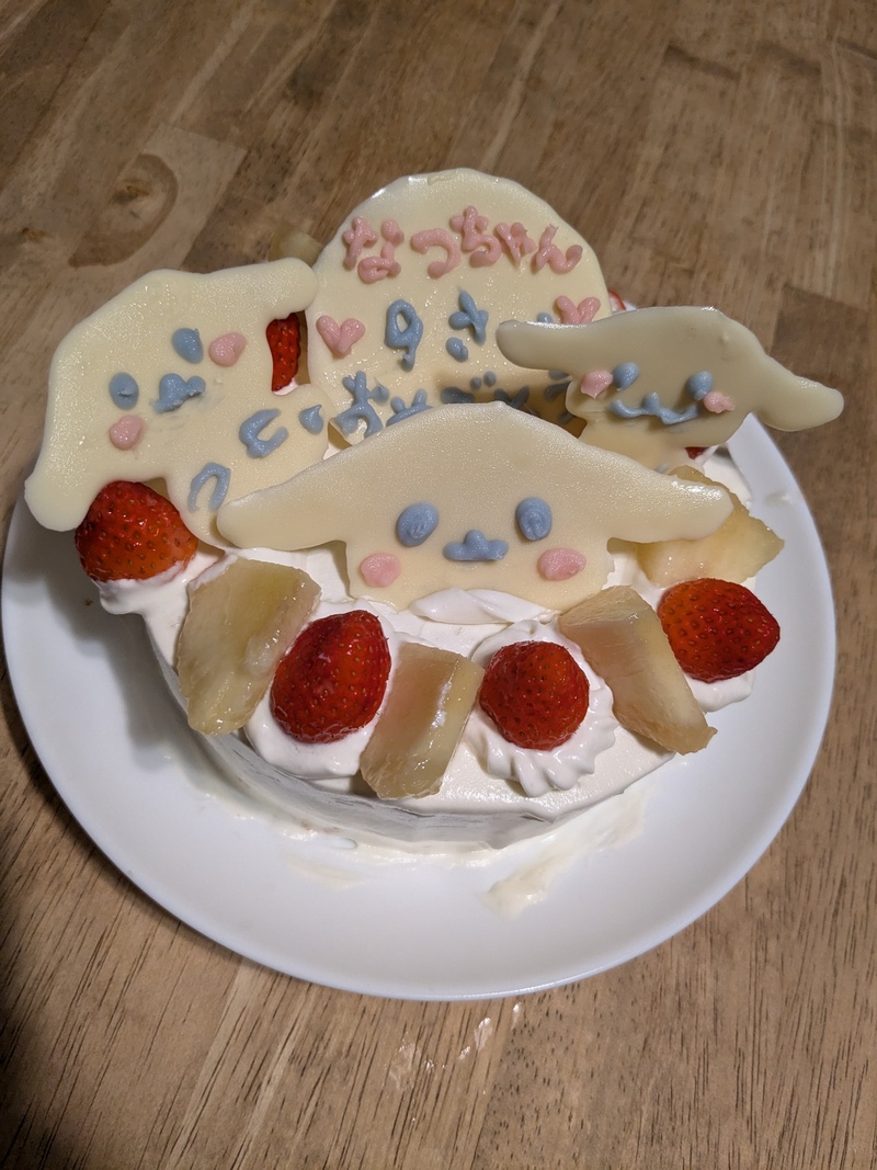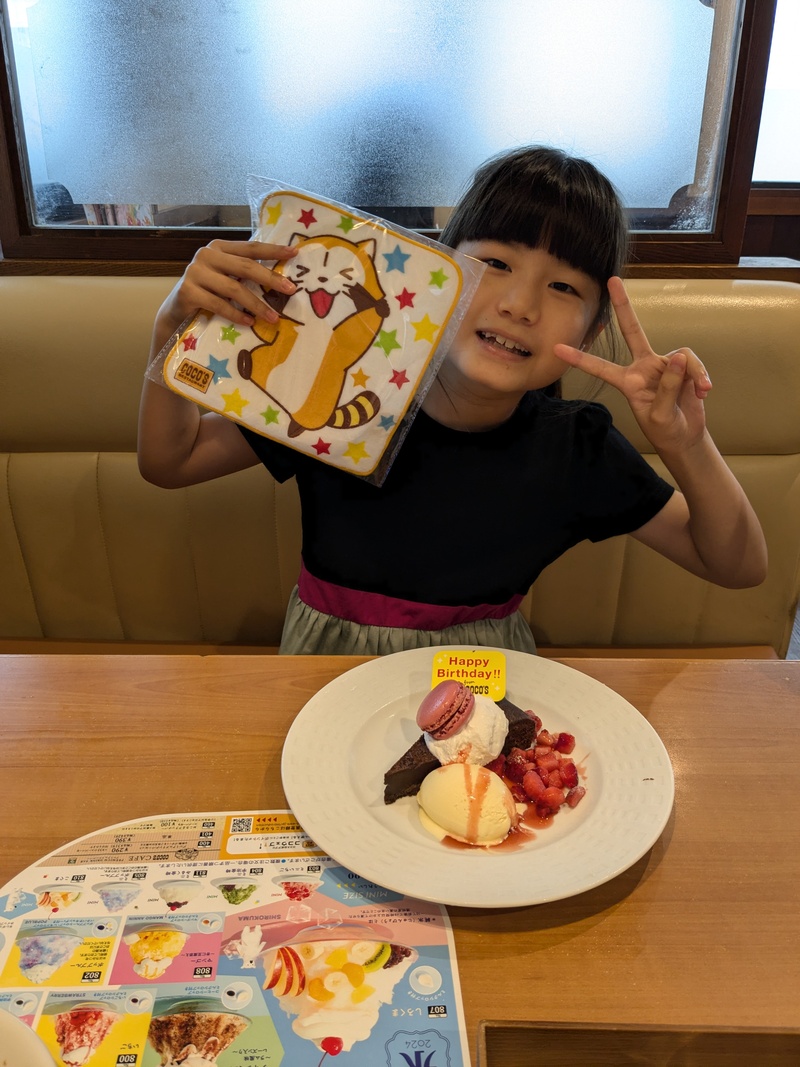 お誕生日プレートとハンカチ貰えて幸せそう。