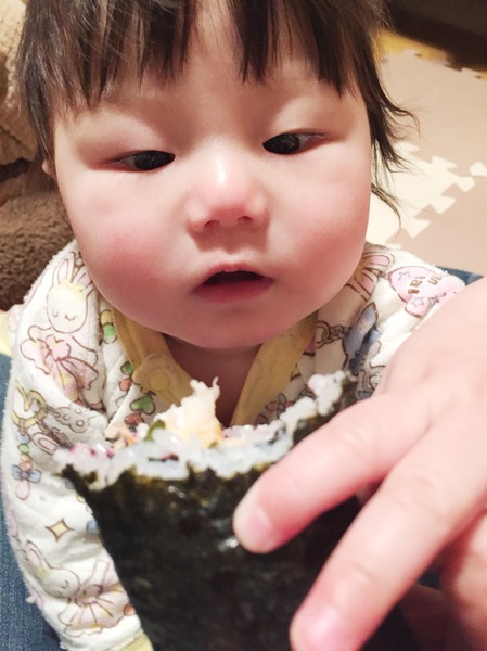 ママが巻き寿司食べてたら欲しそうに手を出して〜