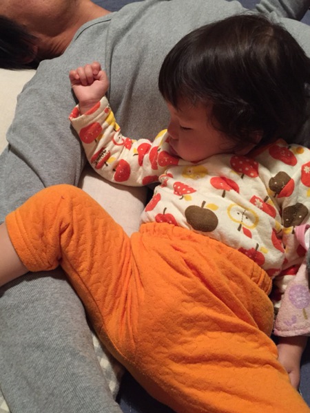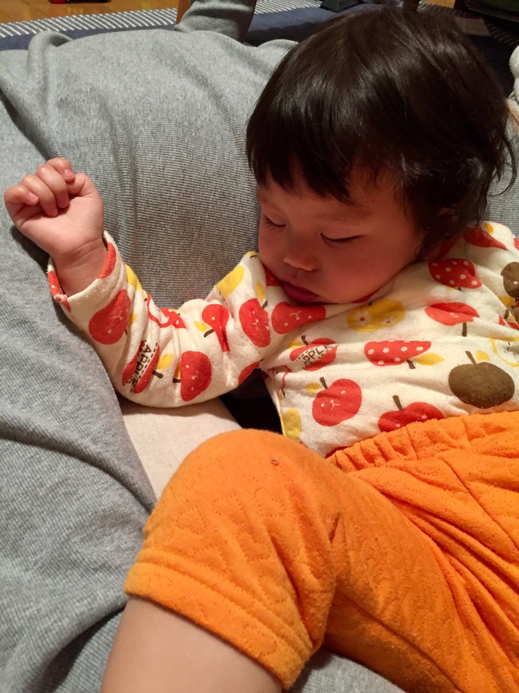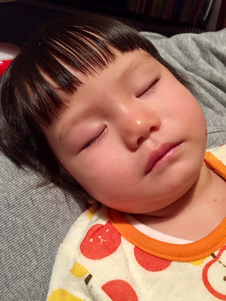 寝ている間に… お風呂あがり、パパの横で爆睡なっちゃん。 すごい格好です( ̄▽ ̄;) 爆睡中に、前髪カットしましたー よくのびる前髪。 こんな時でないとカットできません( ´△`) パッツン前髪(^ω^) 2016.11.7