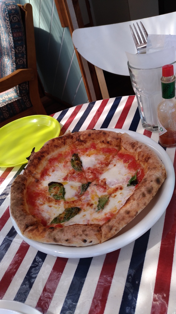 中に石窯もあり、マルゲリータ頼んだのですが、庭にあるバジル取ってきてピザにのせてました。