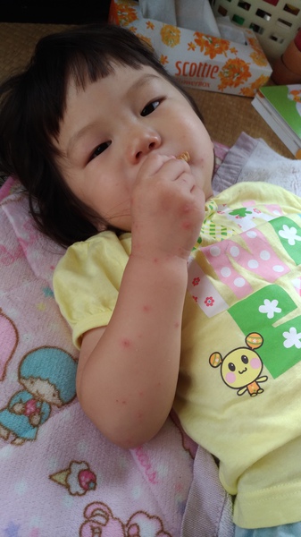 手足口病 初めてなってしまった手足口病。 ブツブツいっぱいできて食欲もなく痒がってかきまくり(TдT) 喉にもブツブツできて、ほとんど食べれないのに、何故か、しるこサンドをカリカリと食べるなっちゃんでした(^_^;) 2017.7.7