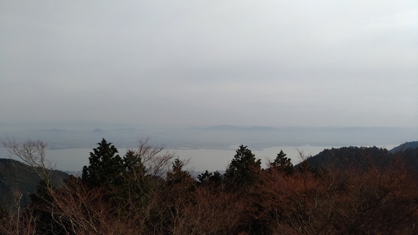 琵琶湖が見えます。曇り空でハッキリ見えませんが…