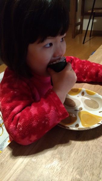 結局なっちゃんは鶏天食べず、分解しだして、ゆかりご飯と海苔だけ食べました(;´д`)