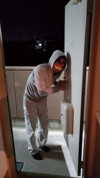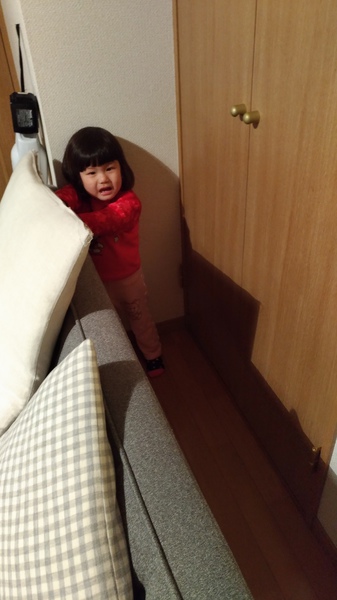 怖いよー怖いよーとソファーの後ろの隅に避難するなっちゃん。